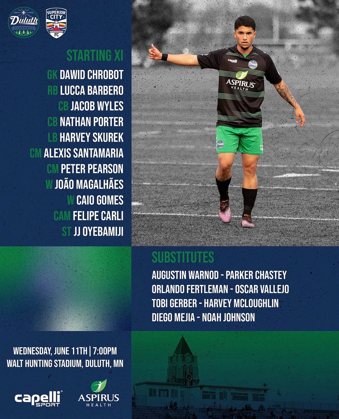 This project features a series of real-time social media graphics created for Duluth FC, focused on delivering timely and engaging content throughout each match-day. Working closely with the team’s photographer, I created visuals for lineup announcements, halftime updates, and final score posts using photos captured just moments before publishing.